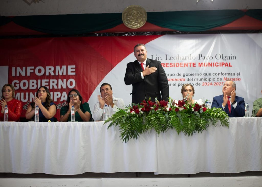 El Presidente Municipal, Lic. Leobardo Paco Olguín, presentó su Primer Informe de Gobierno, destacando que durante este primer año de gestión, junto con su equipo de confianza, ha trabajado con responsabilidad y cercanía en favor de Mazatán.